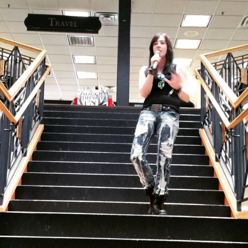 2. Arrive at the event. If you want a seat up front or to be early in the signing line, you can get there early, but you don’t have to go crazy with the earliness. I sign for everyone who comes, no matter how long it takes, so you’re not going to miss out there. Last year, the events ranged from 20-200 people, so the worst case scenario is that you’ll be at the end of that line. Usually the events last two hours from beginning to the very bitter end of the signing line.