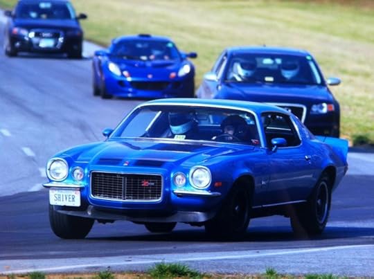 Then David tried to drive the Camaro back (I fought him for the keys and lost). But you can see that the Camaro took its own revenge. It's not designed for Davids. Camaros are designed for Maggies. (As you can see from this photo which is NOT from this week but rather three weeks ago when I took my real-life, non-rented, much-older Camaro to the track):