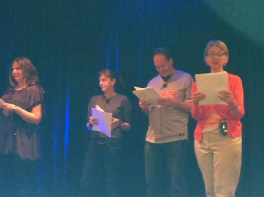 The reason I loved this event, aside from the fantastically passionate Texas librarians, is the format. It was a Reader's Theater, which meant that the authors were assigned a role from a scene in each book, and together, we acted them out with fairly hilarious results. Some of us were thespians. Others of us were just hams. (This is Elizabeth Eulberg, me, Michael Northrop, and Augusta Scattergood).