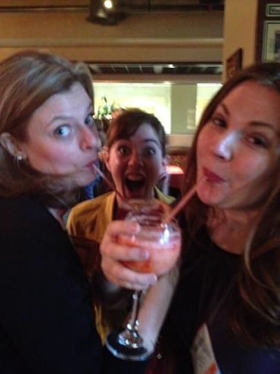 The day was closed out with the YART dinner, where all of the authors got together and milled with librarians. I don't drink, but I'm aware these photos of Siobhan, Elizabeth, and I, will not convince you of this.
