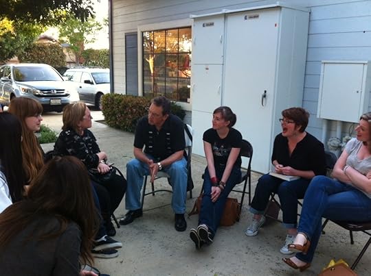 Then it was on a plane to California! Siobhan and I met up with Libba Bray and Pete Hautman (winner of the LA Times Book Award!! whoo, Pete!) Our first event was at Mrs. Nelson's, a delightful indie. We did blog interviews first.