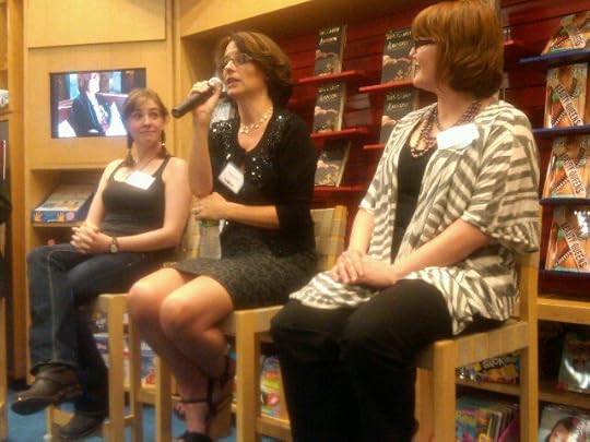 Later, I had a signing session at BEA and signed THE SCORPIO RACES for an hour straight. Oh yes, my neurotic meter, she's ticking. But that wasn't all! I also had two "This is Teen" events with Meg Cabot and Libba Bray. There were a few people at the one at the Scholastic Store: