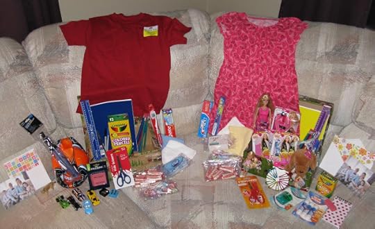 There are three main items to include in each shoebox gift: toys, school supplies, and toiletry items. We usually try to add a clothing item too.
