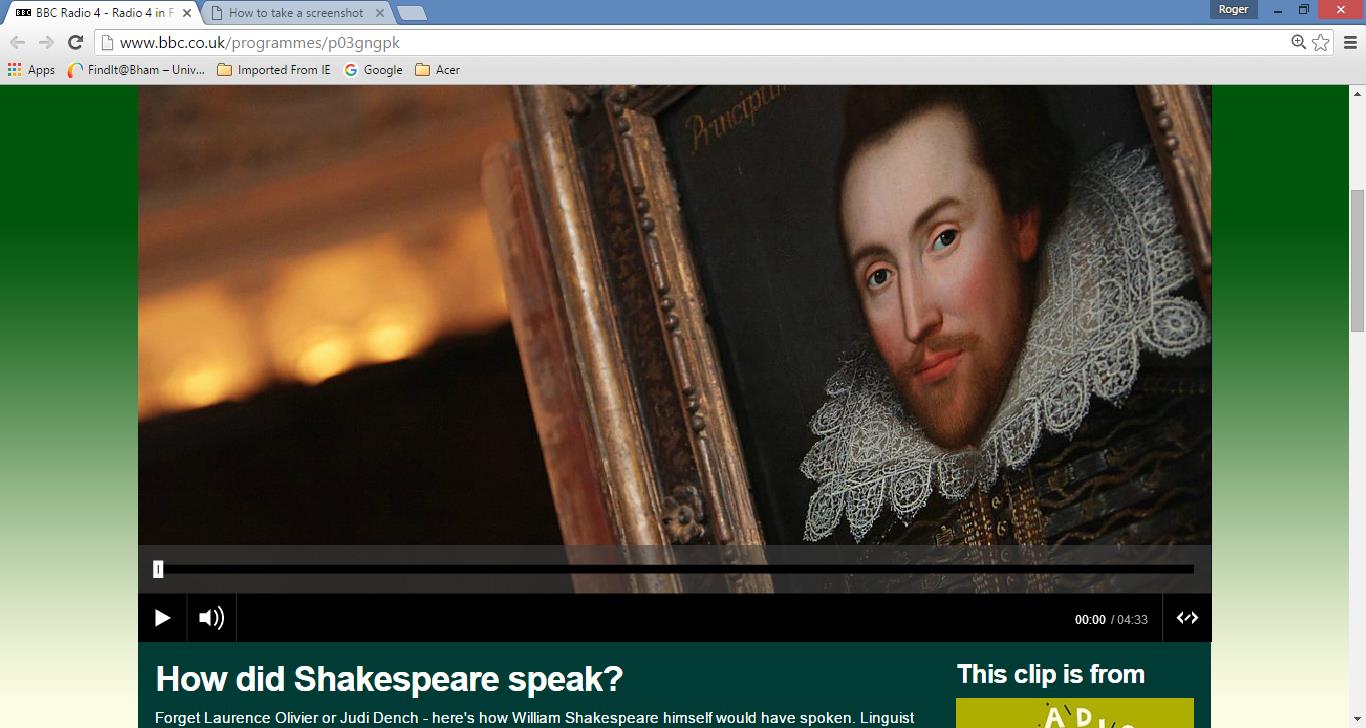 I've always been fascinated by how Shakespeare's plays must have actually sounded. You get a hint sometimes from the baffling false rhymes - 'love' with 'prove' for example - so it's fascinating to hear one of his sonnets reconstructed by the famous British authority on language and linguistic history, David Crystal. To my ears a mixture of West Country and Midlands, with an earthy depth to it: