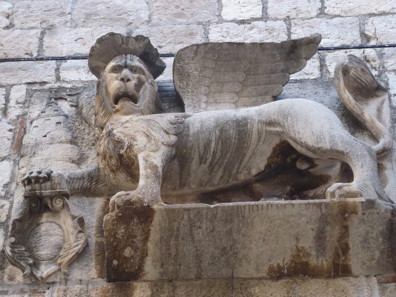 A particularly bad tempered Venetian lion on the walls of the town of the island of Hvar, Croatia