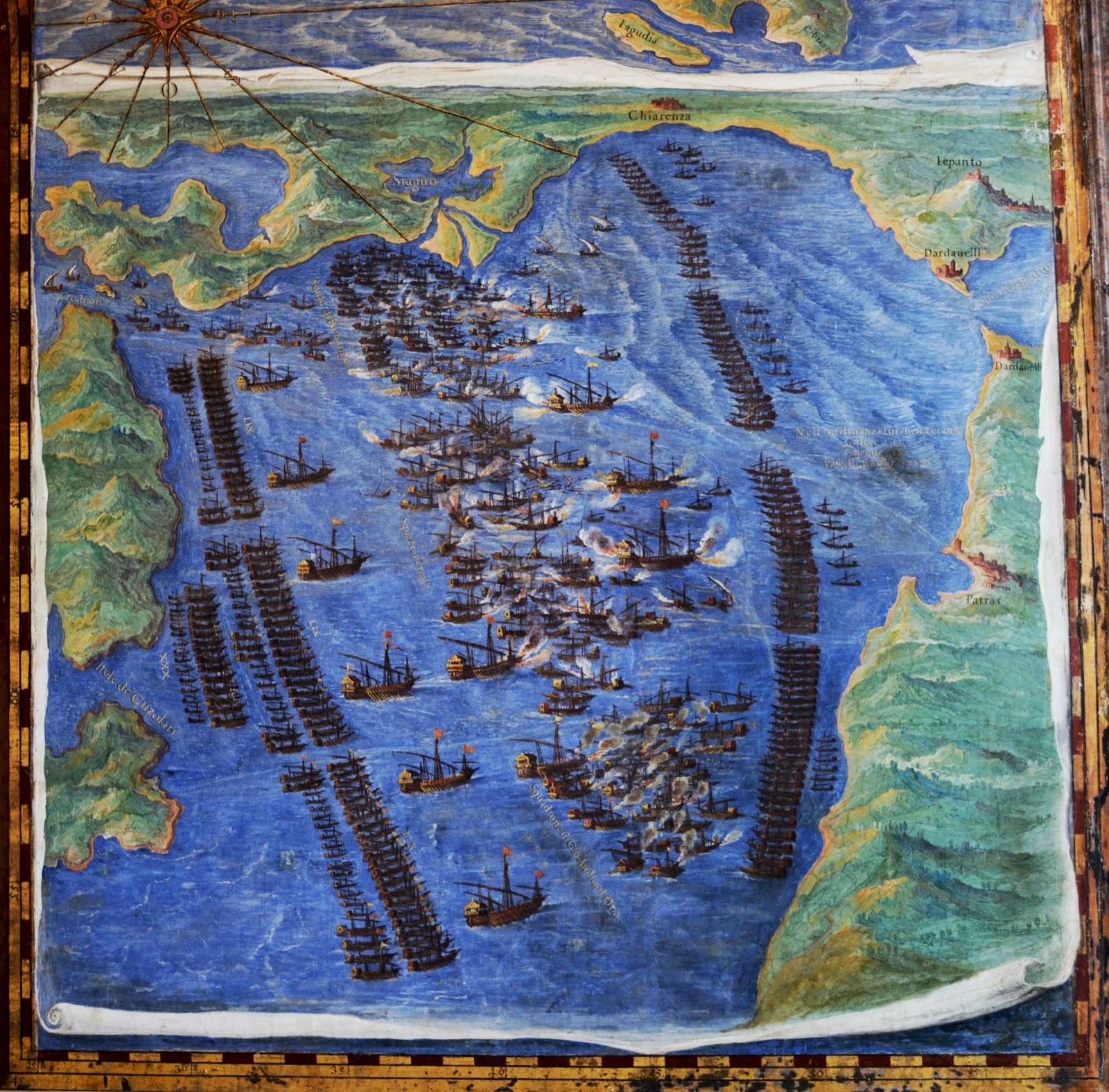 Here's a close upAnd the gallery also has a wonderful birds-eye view of the clashing of the Christian and Ottoman fleets at the battle of Lepanto in 1571: