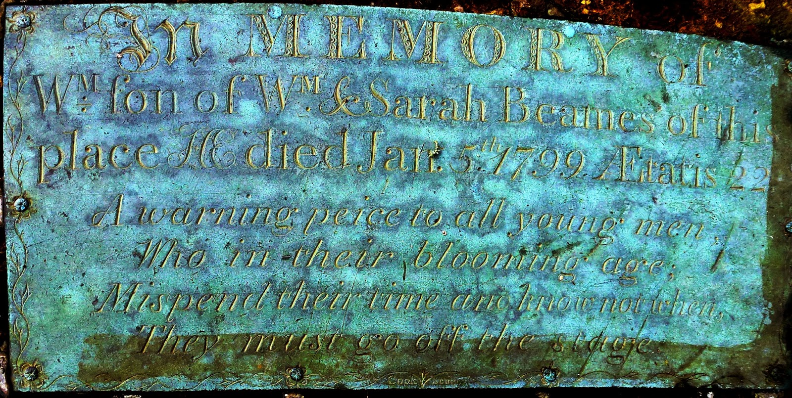 Seen in a country churchyard recently - the memorial to the unfortunate William Beames, aged 22.