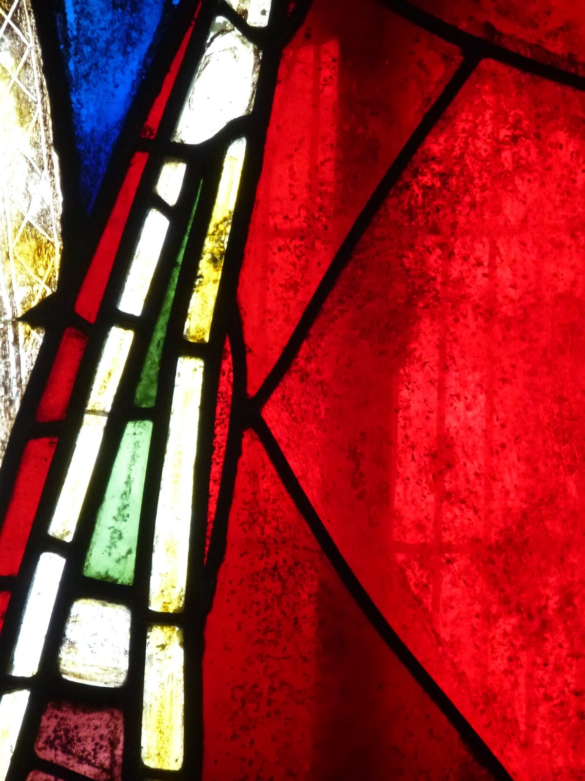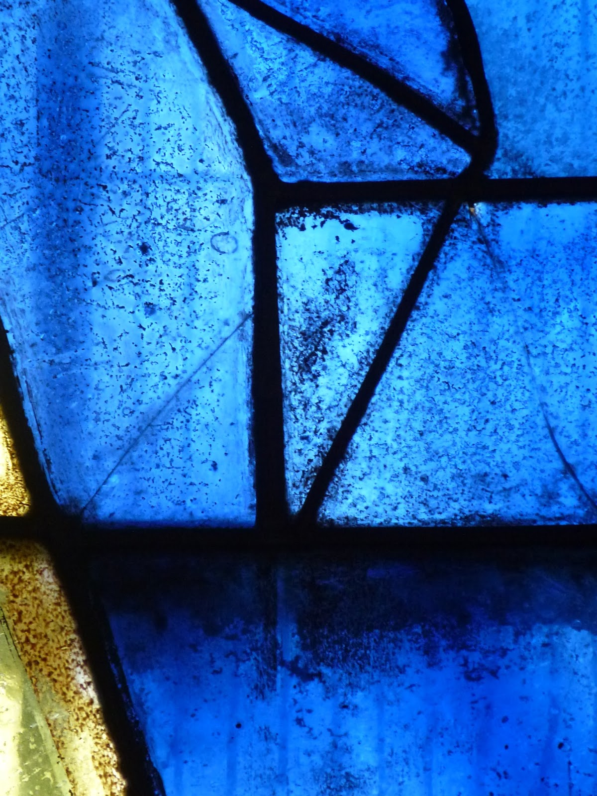 Somehow the glass at Fairford survived this purge almost intact. On a right sunny Easter afternoon, brilliant blues and greens, purples and scarlets glow with an astonishing depth of colour.