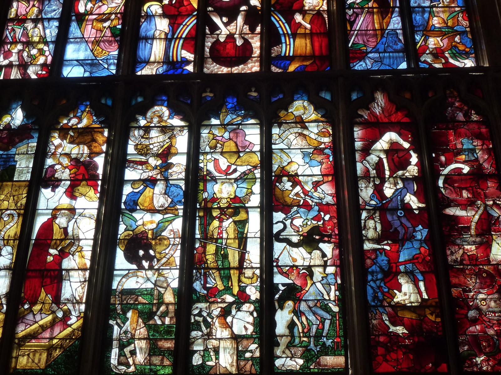 And at the bottom Satan waits, multi-eyed, lustful, pitiless, his gobbling stomach ready to devour the screaming souls being sucked into his blast-furnace so fiercely red you can almost feel the scorching heat coming off the sheets of glass. It could be a scene from Hieronymus Bosch - and you wonder if the men who made the glass, who were Flemish, could have shared his imaginative world. It must have scared the living daylights out of the humble folk of Fairford five hundred years ago.