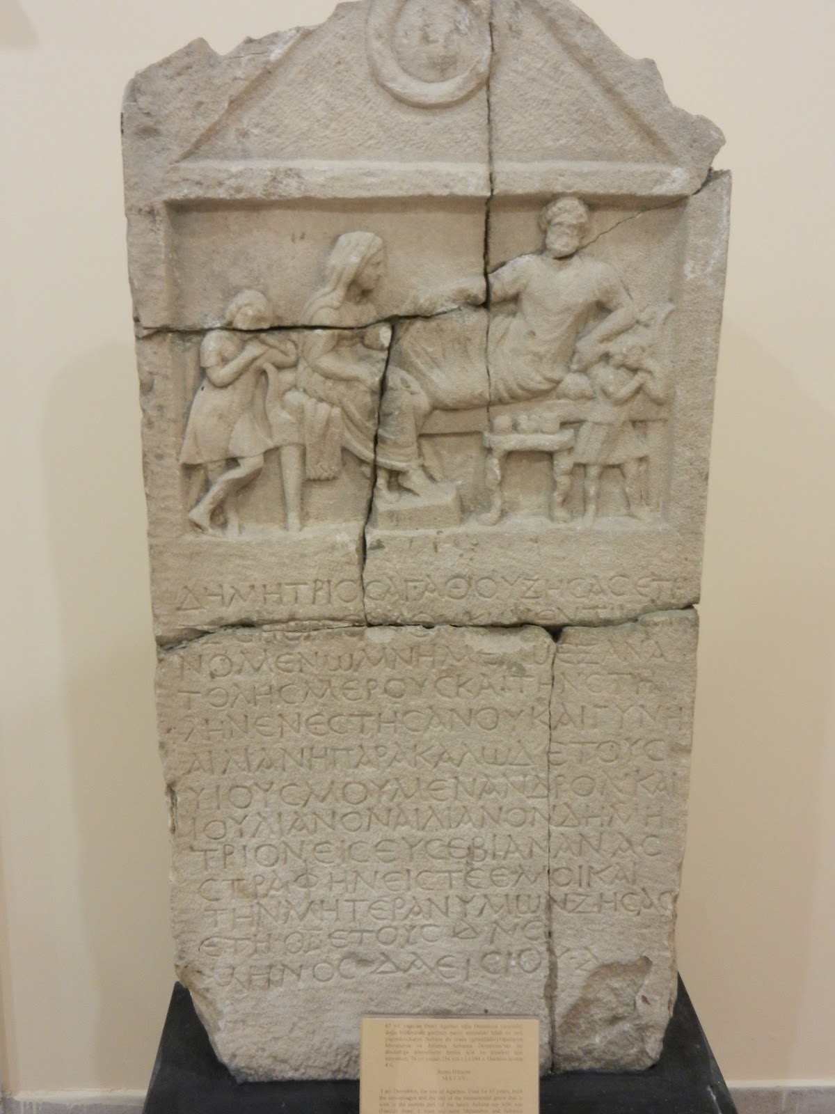'Hades came towards me so fast' laments Hegesandros, 'the famous son of Eros and Apphia', in Amasra on the Turkish coast. 'Listen, stranger' says Ephipania from ancient Tomis in modern Rumania, 'my place of origin was Greece....I saw many lands and sailed over the sea because my father, as well as my husband, were ship owners, whom after death I laid in the grave with clean hands. My life was really happy before! I was born among muses and shared the goods of wisdom. As a woman, I gave much help to women, to abandoned wives, being ruled by pious sentiments, and I helped people confined to their beds by suffering, because I realised that mortals' fates are not according to their piousness. Hermogenes full of gratitude devoted this monument as a remembrance'. A life well lived.