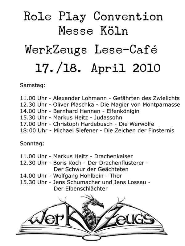 Auch auf der diesjährigen RPC auf dem Messegelände Köln werde ich lesen. Und zwar am Samstag, den 17.4 um 17 Uhr im Lese-Café von Werkzeugs.