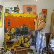 My job is painting. I work at the Torpedo Factory in Alexandria, VA. This building is open to the public every day. It has 3 floors, filled with artists who work and exhibit their art in separate studios. I am also represented in numerous galleries that feature me in shows. They also maintain bodies of my work.