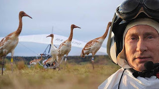 Leda, not exactly chopped liver herself, clearly confused both Putin and the cranes, though only Putin swooped. Leda swooned. The confused young sheltered Siberian Cranes passed their test of hope. Putin passed his test of manliness. Leda scored high with chronic, often fatal bird fetishism.