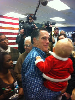 It will be a pre-Christmas surprise, of course, and the details are cloaked in secrecy, but there will be a campaign promise to all legitimate children in the red states to have a chance to win a time-share in a Cayman Islands condo. No handouts for the wretched. Romney identifies with the Santa image, following on the theme of red, which was so successful in the choice of his wife's $1900 Oscar de la Renta dress for her speech at the convention.