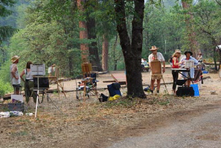 What’s a writer doing at Art Camp? I pondered that question as we traveled up the Sierra Nevada Mountains, crossed Quincy’s wide meadows, and bumped along the dusty road leading into Feather River Art Camp. My head had been down for so long pushing toward the finish line of a novel that art camp sounded impossibly crazy. “Think of it,” a friend persisted. “This is a camp for everybody to make art. It’s a rare opportunity to be drawn into the creative process without any distractions or mundane interferences. It’s you, camp, and your art.” But my art is writing, I thought, not the visual arts. Then I saw the offering of Bookmaking, and my objections evaporated. Rhiannon Alpers, a book artist and letterpress printer at San Francisco Center for the Book was teaching the workshop. How would it feel to make a real book with my hands compared to the long haul of novel writing? The lure was tantalizing. I could write in the afternoons; I wouldn’t break rhythm. Like a guilty wife taking a lover, I signed on. My first glimpse of camp in a wood dotted with old-timey buildings, reminded me of childhood, and I quickly saw that most of the workshops were held outdoors. The scene resembled a Sherwood Forest of artists, setting up tables and stringing lights in the branches. The afternoon sun filtered through the trees, Spanish Creek called to swimmers, and the wind sent the pines to singing. When the dinner bell rang, off we trooped to the Chow Palace. That night the temperature dipped to 37 degrees, and we slept in our rustic cabin like babes under down comforters. On the first morning, Rhiannon, a tall, striking redhead with a soft voice, took control of our group of eight. We arrived with basic supplies; she brought paper, thread, wood, needles, leather scraps and paint. Clumsy at first, I fell under the spell of completing one task at a time: measuring, cutting, folding, painting and sewing. I soon realized that the craft of bookmaking is a blend of geometry and artistic vision. Rhiannon’s direction was precise, her artistry astonishing.In the hot afternoon on the shaded porch of my cabin, I wrote. Playfulness entered my writing. I took more risks, dove deeper. Somehow giving myself permission to learn a new craft energized my writing practice and fortified my dedication. By week’s end, I made two books that I loved. No matter that the pages were blank—they were smooth and creamy, scored and folded by my fingers; the wood cover didn’t have a title—it was sanded and painted, embellished with a driftwood handle that I had found on a beach in Baja; the binding had no glue—it was hand-stitched in bright orange thread in an intricate Copic stitch pattern. Now, following an invitation from Rhiannon to publish a small letterpress edition at San Francisco Center for the Book, my memoir, My Moveable Feast, with drawings by Fiona Taylor, is launching on September 7th. And that novel I was writing? Dreaming Mill Valley, will be published this October in print and e-book formats. My friend was right. Fostered in art camp, my creativity knew no borders. It flowed freely, summoning the Muse, urging me on. www.christienelson.comwww.featherriverartcamp.comwww.sfcb.orgwww.rhiannonalpers.com