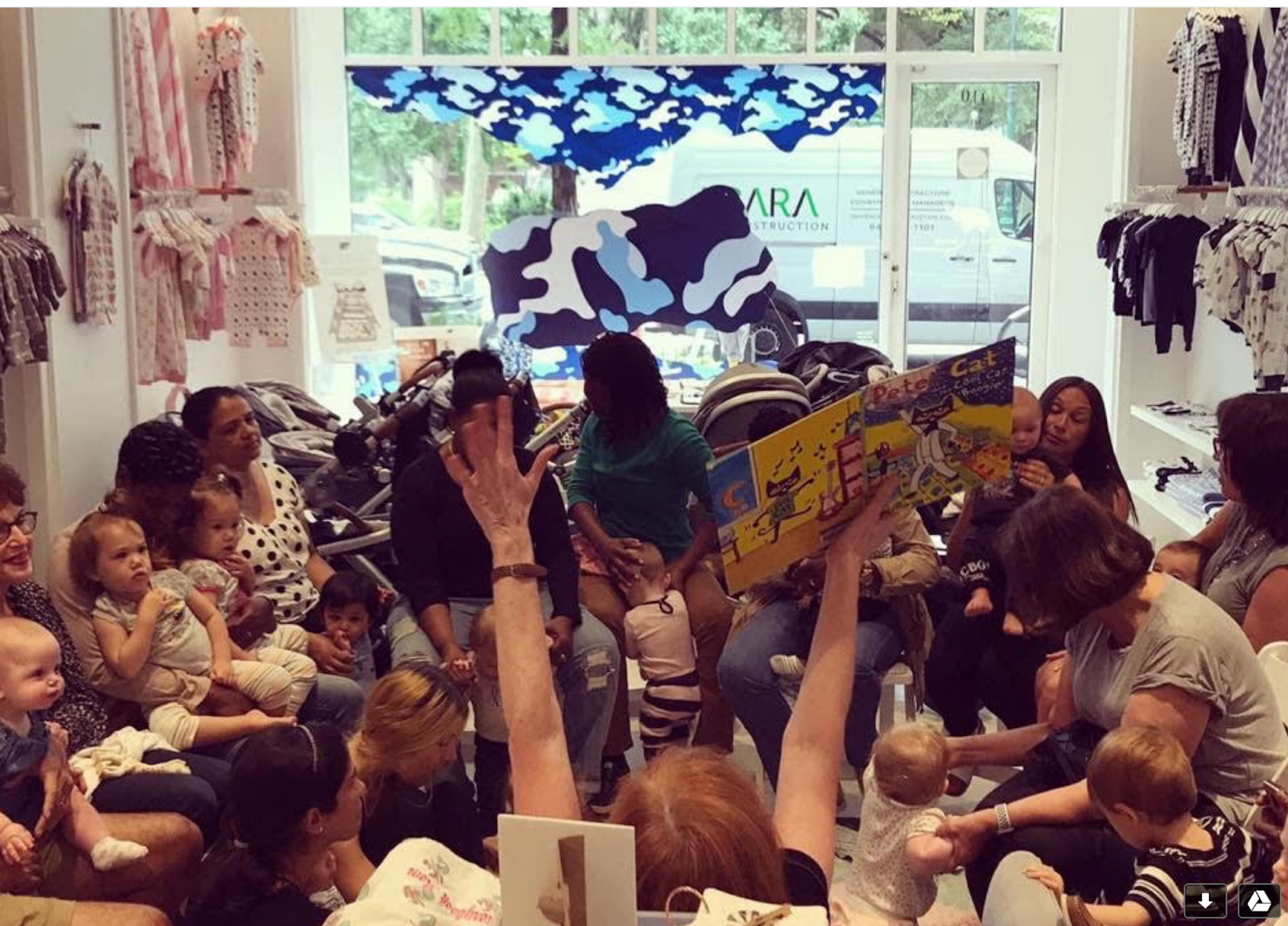 I learned about this incredible baby and toddler organic clothing brand when I read an article in Forbes or Crain’s about this new brand opening in Chicago in 2014 and that the founder, Monica Royer wanted to create an experiential retail experience with classes and events, including STORYTIME. I was the biggest storyteller in Chicago, (and there weren’t many to begin with), and I was thinking, “Who is going to be their storyteller.? I met with Monica and she said let’s try one and see and as soon as I did the one she asked me to come back every week.