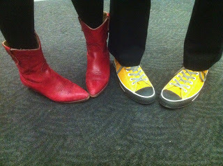 The Night Strangers is an unsettling and eerie novel about plane crashes, sinister herbalists, and how the dead and the living interact. I can't thank him enough for answering my pesty questions. But I'll try: Thanks, thanks, thanks, thanks, Chris! And just for the record, those shiny yellow sneakers below, beside the red cowboy boots? Chris and I at the fabulous Rainy Day Books Event!