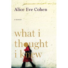 I admit I'm drawn to books about medical mysteries. Maybe it's because for one terrifying year, I had one of my own (but that's another story altogether). Alice Eve Cohen's What I thought I Knew isn't so much a mystery as it is a journey about everything going wildly wrong. Her memoir is as funny as it is shocking, and I'm thrilled she agreed to answer my questions. (Thank you, Alice.)