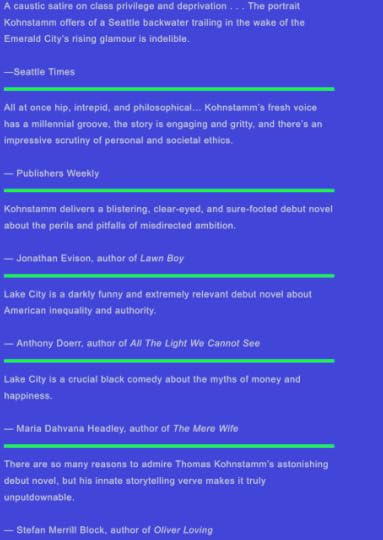 Thomas Kohnstamm talks about LAKE CITY, 3 x5 cards on corkboard, personal ethics, writing, and so much more.