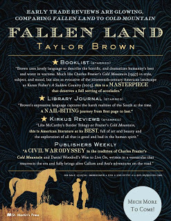 Orphans, Bounty Hunters, Lovers daring an escape, and the last days of the Civil War--that's only part of the incredible story in Taylor Brown's Fallen Land. He is the recipient of a Montana Prize in Fiction, and he’s been a finalist for the Press 53 Open Awards, Machigonne Fiction Contest, Wabash Prize in Fiction, Rick DeMarinis Short Story Contest, and Doris Betts Fiction Prize. He is also he author of In the Season of Blood and Gold, The River of Kings, and Gods of High Mountain, as well as numerous award-winning short stories. I'm thrilled to have him here.