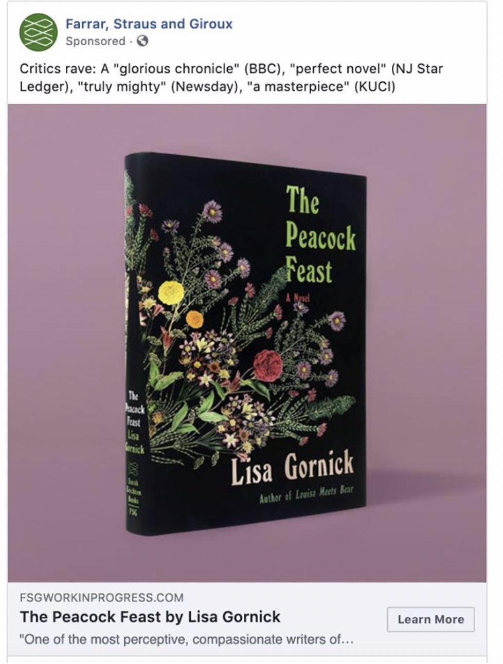 You can read about THE PEACOCK FEAST HERE, and see the lovely praise from Christina Baker Kline, Rebecca Makkai, Joan Silber, and Meg Wolitzer.