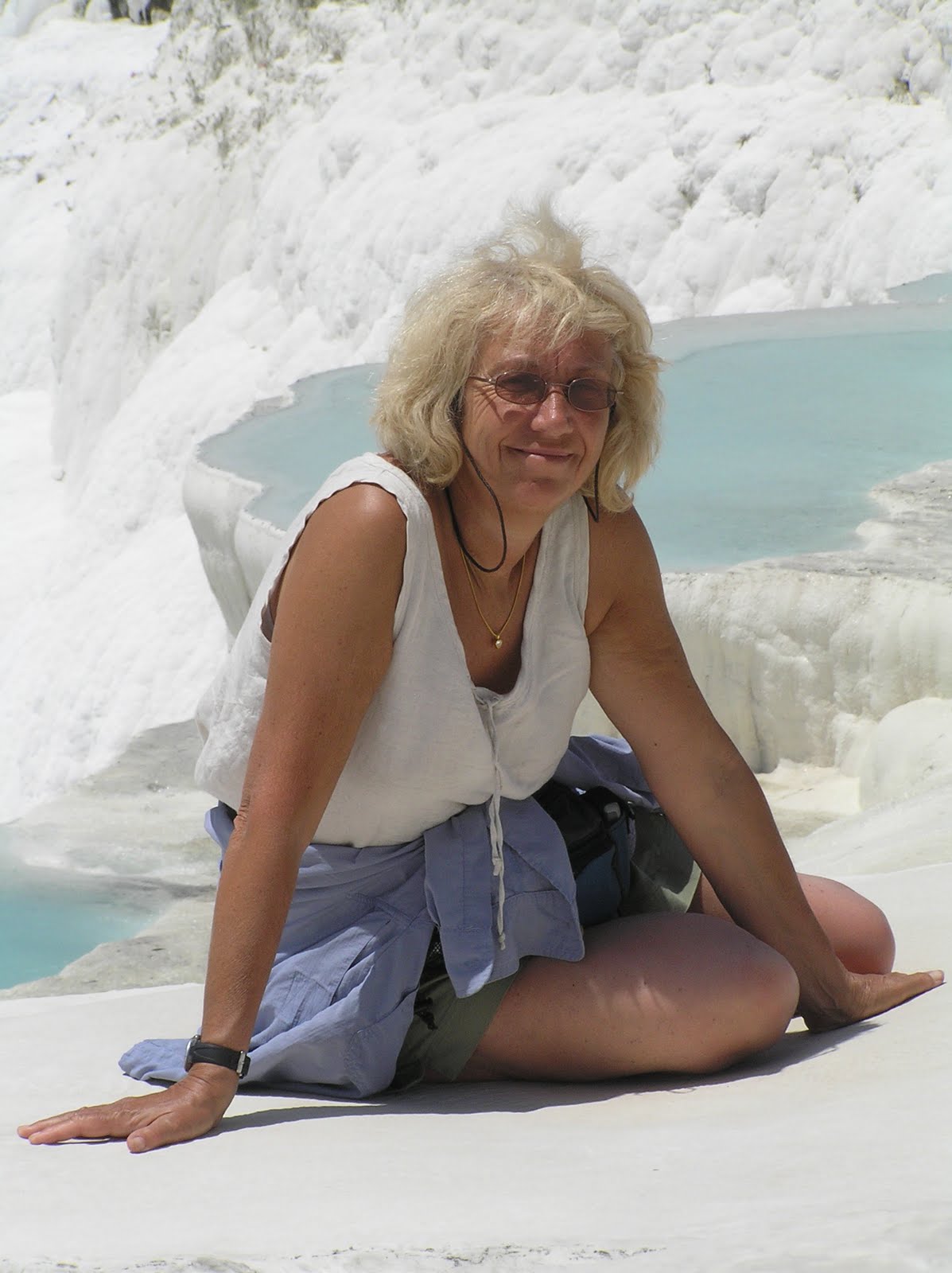 I've just come back from week in Turkey. I've been there many times, but this time I managed to visit Pamukkale, a place I've always wanted to see. The name means 'Cotton Castle', and the natural terraces are formed from a sedimentary rock called travertine, which is deposited by the hot springs there. The ancient city of Hierapolis was situated here, and there's a big amphitheatre nearby.