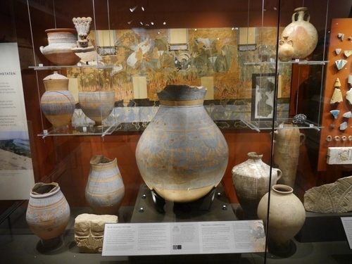 By ditching the old religion to focus on worship of the sun-god, the Aten, Akhenaten also dispensed with the complex iconography which can bedevil the appreciation of Egyptian art, and probably inhibited its development. Instead of having to remember the names of gods and symbols you can bask in the sensuality and humanity of the depictions of Akhenaten’s family, and the exuberance and impressionism of the marshland scenes of birds and plants. Although this too has a religious aspect – Akhenaten and his family were the sole mediators with the Aten, and the natural world provided the offerings that were made to the god – one of the fascinating aspects for me is the similarity of the paintings in particular with Aegean art of this period, produced in Greece and Crete. While this may represent a kind of artistic flowering across the East Mediterranean at this time, when increased trade and the movement of people and ideas could have spread a common artistic taste, it may also reflect political and dynastic ties – something I touch on in my novel Pyramid. At the Ashmolean you can judge this for yourself because one of the other great collections of the museum is the Aegean Bronze Age material brought back by Arthur Evans from his excavations at Knossos on Crete, now also superbly displayed following the refurbishment of the museum and its reopening in 2009.