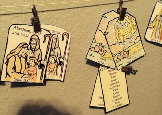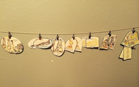 This one is a little more involved but has been worth it. We made little cutouts representing the major happenings in the Old Testament. Every few weeks we add one to create a timeline of Biblical history.