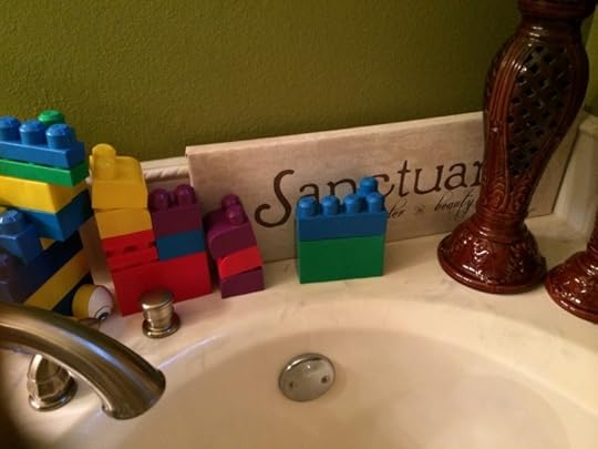There it is. Do you see it? Tucked behind all those legos that my son Jude plays with. . .in MY bathtub. . .that is in MY sanctuary/bathroom is the sign - imprisoned like a caged animal trying desperately to get out from behind its multi-colored cell.