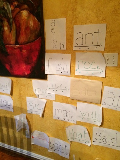 A different rotation of words like these have been there for years now. Taught all three of my boys to read during the pre-kindergarten years and our "wordwall" has been a huge part of the process. It's my four year old's turn now (the same one that turned my tub into a toy box). We've all gotten so used to seeing our kitchen wall scattered with random papers that it doesn't phase us anymore. It's just our "wordwall", that's all. I'm sure a guest's eye might see it differently and laugh hysterically if they knew about my sanctuary sign - the caged animal on lock down in the bathroom.