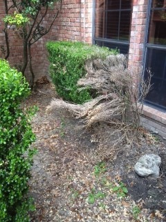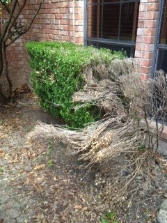 It's odd that one bush could be so dry and deadened while the other, planted right next to it, is so lush and vibrant. They are in the exact same flower-bed and they are receiving the same nutrients, yet one is noticeably deteriorating. I wish I was some sort of botanist so that I could figure out why but. . . I'm not.