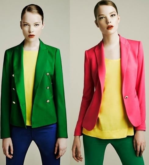 A few weekends ago I was at the mall and I passesd by Express and I was appalled when I saw a manikin wearing a hot pink top, a neon blue shirt and a green jacket! I stopped dead in my tracks and I deeply gazed at the outfit and before I could utter a sound, my friend who I was with said...with much excitement, "Isn't that outfit hot"! Ummmmm, let me tell you, hot was not the word I had in mind! Ha! She went on and on about how much she loves the new trend called, Color Blocking. I really didn't want her to know that I had absolutely no idea what she was talking about, so I just knodded my head and stored the new information I had received in the back of my mind and when I got home, I googled this new trend and OMGOSH! Color Blocking is a whole new world!!!! These are some of the pics that I found.....