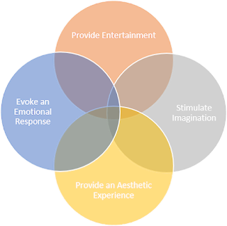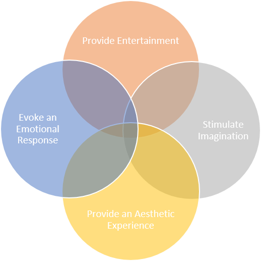 The first aspect of my vision for the Sweet Spot was to see fiction as having four primary goals: 1) To entertain, 2) To provide an aesthetic experience, 3) To evoke an emotional response, 4) To stimulate imagination. (None of these goals is more important than any other; they’re all equal despite my numbering them here.) The Sweet Spot – the area where fiction is its strongest – is the point where all four goals coincide. Let’s talk about each goal and why it’s important, then we’ll discuss why it’s vital to tend to them all – to the Sweet Spot – if you want to produce the best fiction you’re capable of.