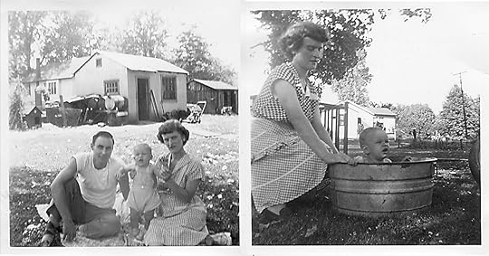 War creates a lot of change and is very expensive. Taxes on the rich to help pay for war and the availability of jobs to help win the war, created a movement of wealth from the top down to the working classes and helped bring people into the middle class. After the war my father eventually learned enough to become a machinist, what was then called a tool and die maker. It was skilled labor and it paid very well, he was able to get married and start having children. I was born in 1951 and soon after, my father was able to build a house. In the later 50’s a local recession and lack of jobs forced him to move to Utah where he was able to buy another house and 15 acres of a small farm from my mother’s sister. With the cold war fully in swing, there were many government contracts in Utah and plenty of work for his expertise. And, unlike my parents, me and my sisters and youngest brother were able to grow up in a financially secure and happy environment, free from want or need, all products of a strong middle class. (In my next blog I will look at the effects of growing up in the middle class and the aftermath of late 20th century politics to reduce the middle class.) (Below, my mother, Janet, and my father Bernard and me, about 10 months old. Behind us is the very small 2-room house (?) that they lived in while my father and grandfather build their main house from a purchased kit. And me getting a bath outside since the plumbing in the little house was rather inadequate.)