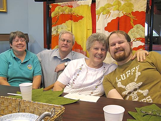 Last Saturday I received a phone call informing me that my aunt, Martha (Goodwin) Mudd, had died. She was the youngest of 7 children by my grandparents Samuel and Rosemarie Goodwin. I got to know my Aunt a little before my father and mother moved us out to Utah in search of employment, and from visits to and from Illinois. When I was older and on my own, several trips east were always rewarded with a stay at my Aunt’s. She always told me stories of her travels with her husband Patrick. First around the United States and then overseas. Her descriptions of national parks and big cities around the country encouraged me to follow suit after I got married to Lynne. The travels abroad and tales of palaces, great cathedrals and historical places encouraged us to follow in her footsteps. Whether she was visiting Scandinavia, Russia, Europe or Asia, I was always impressed with her stories and especially her account of visiting Croatia to locate the city of her mother’s parents and relatives. They were noted gourmets and always took us to the best restaurants, not the most expensive, but the ones with the very best food. They also instilled in our only son, Rob, a great love of good food and faraway places as well. My aunt was also an excellent artist, the first active one in the family. She signed her paintings, M. Goodwin, preferring to use her maiden name. So when I became an artist, I was obliged to sign my work, M. C. Goodwin, but I have never been bothered by this, preferring to honor her achievements as the first. While we never got to travel abroad with Martha and Pat, we did get to show them around our area with places like the Golden Spike National Monument, Ogden, Salt Lake and much of the back country of the Wasatch Mountains. Martha and Pat were very excited to visit us during the construction of the museum and with hard hats firmly in place, eagerly and fearlessly climbed through the half-finished building listening to Lynne’s descriptions of future exhibits. Returning a couple years later Martha contributed more then she could afford to help the museum move forward. My Aunt was a wonderful, positive influence on my life and my family’s, she will be greatly missed. (From left to right, my cousin Connie, me, Martha and my son, Rob at the museum a few years ago).