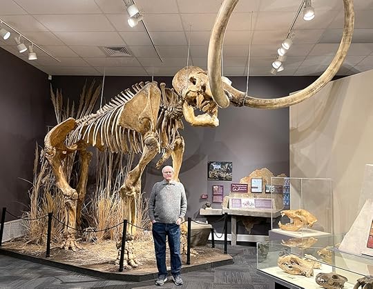 (On a recent trip to Southern Idaho, I was delighted to find this beautiful reproduction of the Huntington Mammoth at the Herrett Center for Arts and Science on the campus of the College of Southern Idaho. I am standing in front for size comparison, I am 5’ 11”, he is much bigger.)