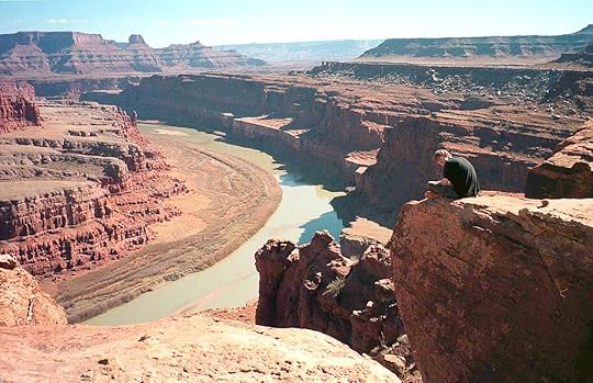 There is still a long way to go for a safe landing and a lot of awful people to deal with when we get there, but our initial descent has begun and it is a hopeful beginning. (Below, My son Rob sitting on a precipice above the Colorado River in Canyonlands National Park years ago, when there was still plenty of water in the river.)