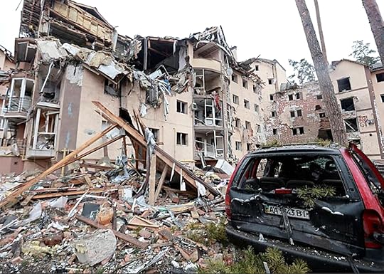 (Nuclear war on top of climate change would be disastrous human folly, but I am not holding my breath for anything better from my fellows. Photo of a conventionally destroyed city near Kyiv in Ukraine, courtesy AFP.)