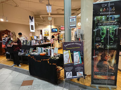 Nu är det dags att ge sig ut med böcker och bilder på julmarknader, mässor och signeringar inför julen. Cecilia Larsson Kostenius och jag har kommit på att det är roligare att vara två. Vi hjälps åt att guida kunderna att hitta rätt bland vårt gemensamma utbud. Kul!Hittills har vi hunnit med att vara på en rad olika signeringar, och nu blir den första för säsongen julmarknaden på Blackis i Luleå till helgen. Jag kommer att ha med mig böckerna "Skrivtävlingen", "Astrid, Astrid" och "Korpmåne" plus lite tavlor och handmålade kort. Cecilia har med sig sina böcker om de fem elementen. "De ursprungliga" och "Gudarnas skymning," samt nya boken om Siri och Alve som hon skrivit tillsammans med sin syster Carola Siekas Kostenius. Nästa helg är det dags för författar och berättardagarna Eyvind 2018 och då blir det bokbord i Boden. Jag ska berätta mer om det när det närmar sig.