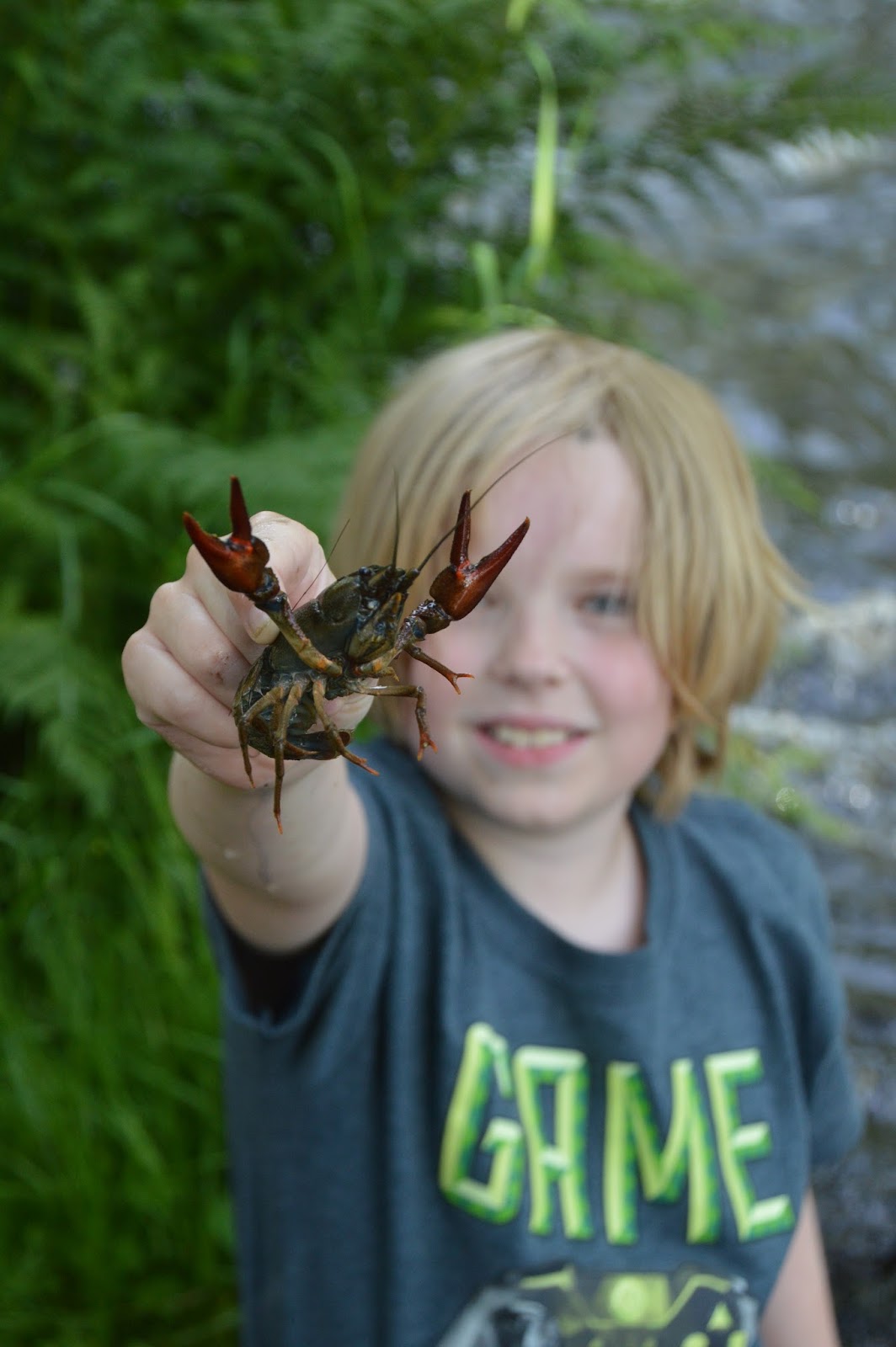Nissen matar de nästan tama kräftorna med bullar och vågar plocka upp.