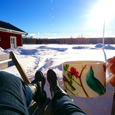 JO vårsolen skiner in. Härligt. Och ljust!Nu är det den femtonde mars och solen braskar in genom mina minst sagt dimmigt dammiga fönster.Lyser på det likaså dammiga tangentbordet, och laptopskärmen som inte visar sig från sin bästa sida. Jag tänker på markiser och rullgardiner (som vi inte har) och går ut i stället och njuter av solen. På morgnarna är det runt tio minusgrader. Mitt på dagen blir det plötsligt flera plus.