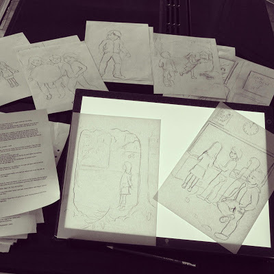 Jag gillar att skissa och använda ljusbord för att föra över bilder till tjockare papper. Tidigare hade jag ett tjockt ljusbord med lysrör i som man kunde luta i olika vinklar. Fast det brann ju förstås upp när vårt hus brann ner.Nu har jag ett mindre i A3 format som nästan liknar en Ipad. Men den skillnaden förstås att den inte gör annat än lyser. Under den har jag ett sådant där lutande plastsängbord för laptops från Ikea. Det funkar faktiskt jättebra.