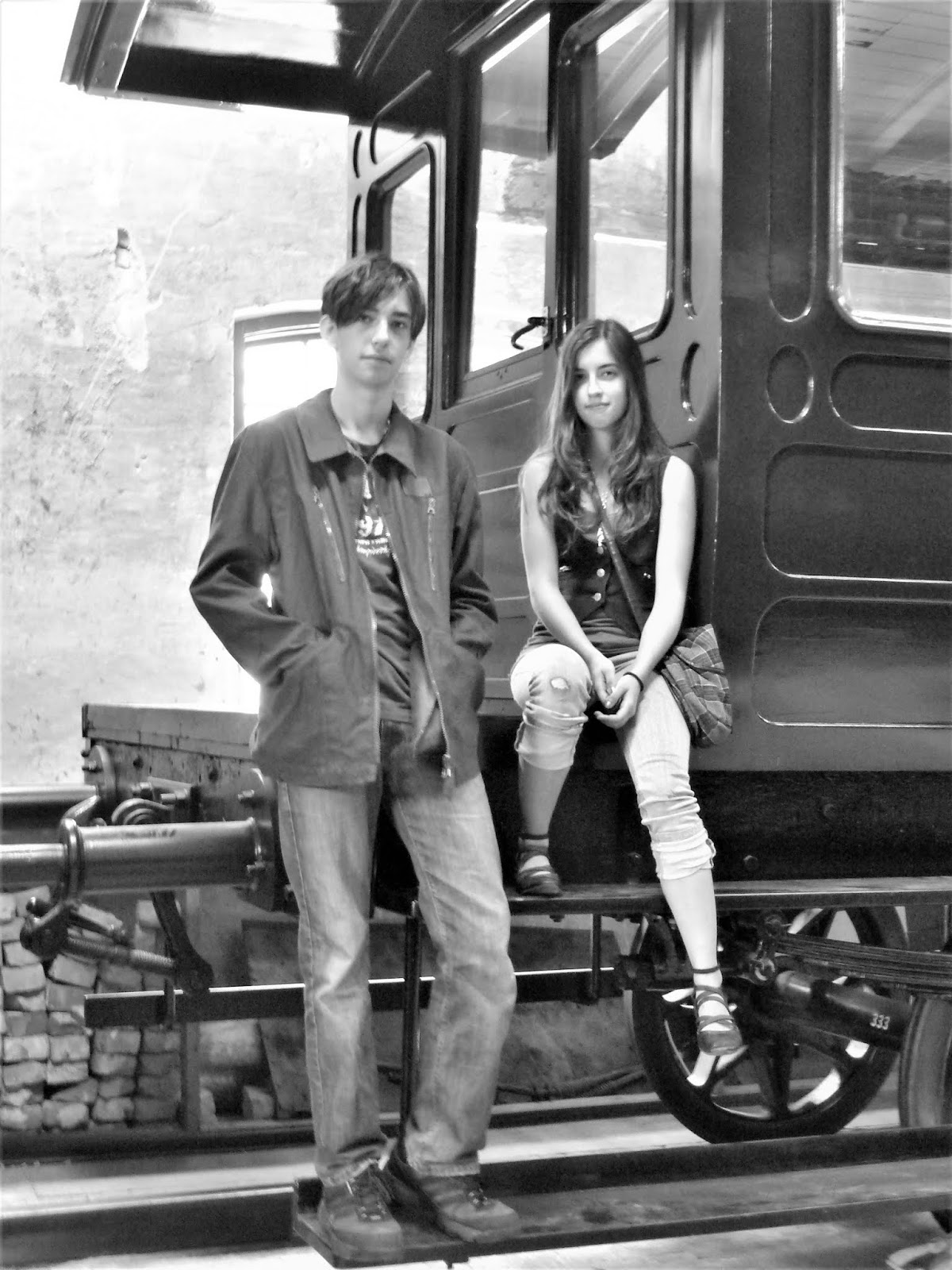 Mina barn Albin och Lovisa för ett antal år sedan. På järnvägsmuseum i Karlsvik.