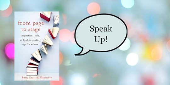 Now you’ve got a great guide in this new book from a coach who works with authors: From Page to Stage: Inspiration, Tools and Public Speaking Tips for Writers by Betsy Graziani Fasbinder.