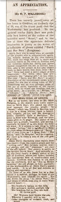 An obituary was written by Edith’s friend, MP Willcocks  and published in The Western Morning News on Thursday 17th of July 1924. It is perhaps the most succinct summing up of the Crediton writer, reminding us here looking back that our past’s writers need to be kept in our local communal memory.
