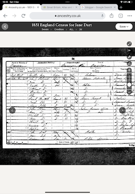So we begin with William Dart, Edith the author’s father, a local builder from Crediton, born in 1833 who was son of John Dart, born in 1792, who had married Jane Sampson. As noted above Jane and John along with their son William, aged 16, ‘builders apprentice’ are named on the 1851 census; Jane, 61, is three years older than her husband. The 1841 census ten years before has the couple, now both the same age (45), with five children – the I believe youngest sibling William (Edith's father)  is eight. In other words there appears to be some discrepancy in facts about Jane’s age.