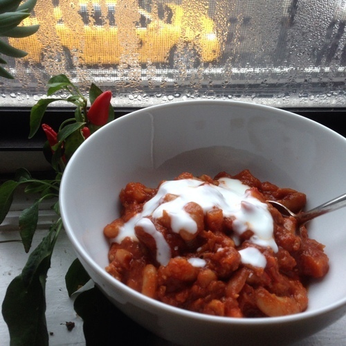 I've made the mistake of thinking that meat and beans were enough. They aren't. I've tried to compensate with corn and chorizo and sweet potatoes. Not quite. It's rather hard to make the leap from slurry to stew.