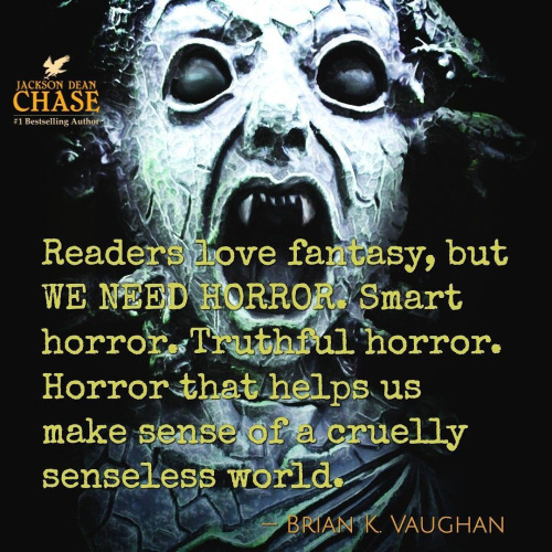 “Readers love fantasy, but we need horror. Smart horror. Truthful horror. Horror that helps us make sense of a cruelly senseless world.” — Brian K. Vaughan