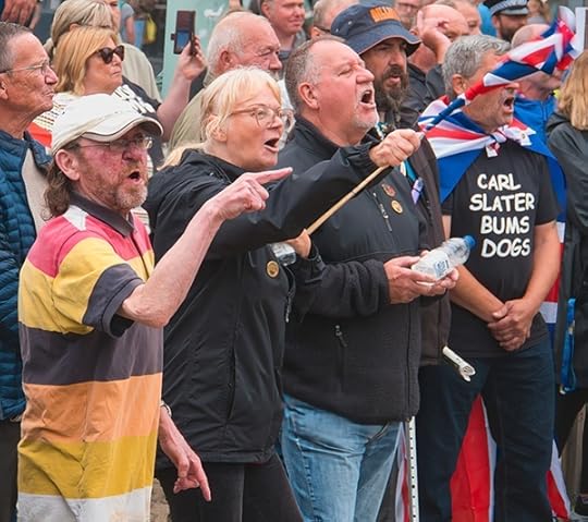 They also abuse immigrants, using them as scapegoats to stir up hatred and further their political agenda. You can get a flavour of that from this pictures of their earlier protest in Plymouth, not long after a full-on riot. Obviously, they missed the point because they are provoked by the very idea of welcoming immigrants.