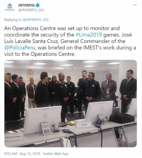 Meanwhile, over in Peru, Scientology’s pal General Lavalle had his own chummy relationship with Interpol, as reflected in this 2019 tweet.